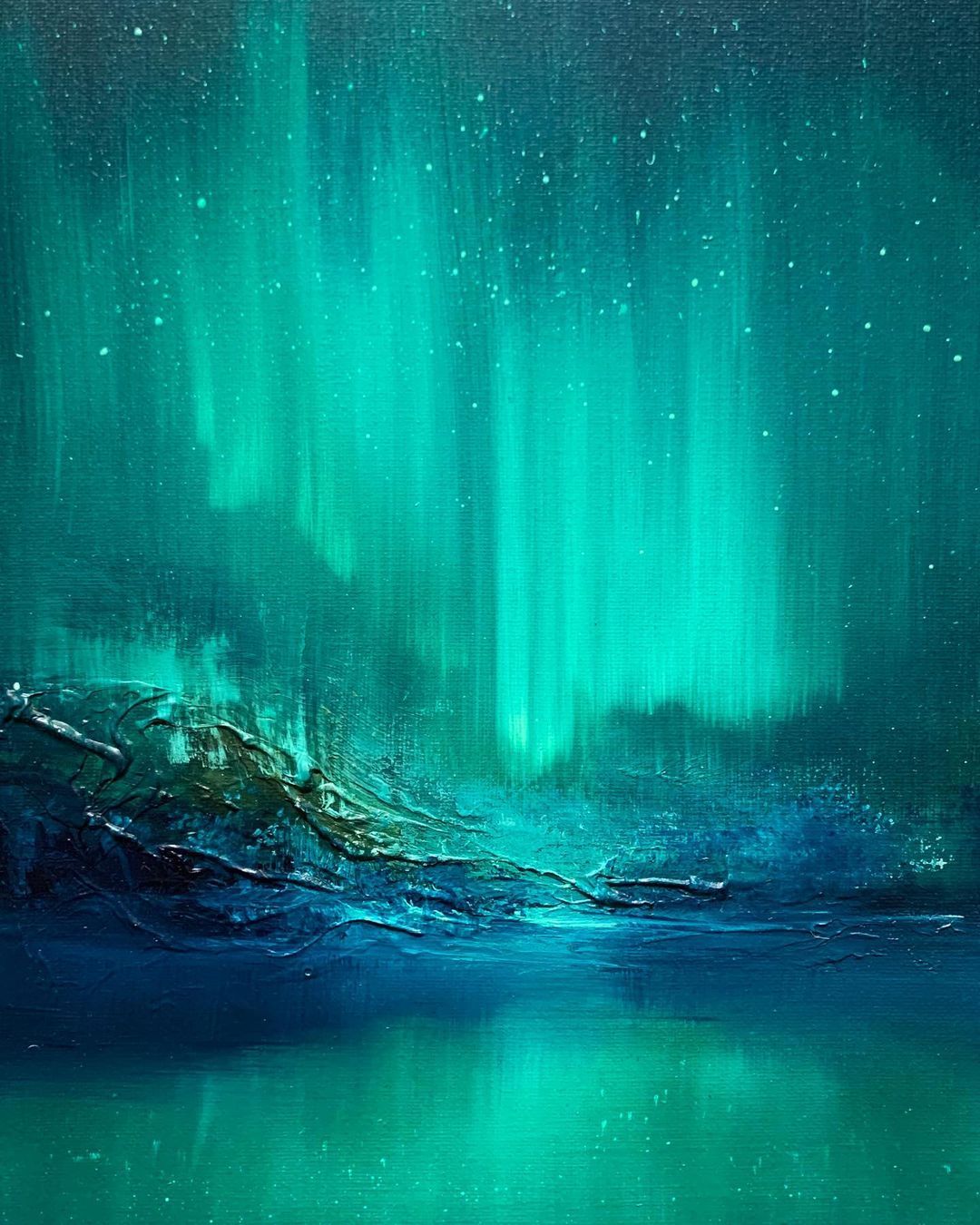 Ce cours de peinture didactique, où vous serez bien guidé à chaque étape, vous invite donc à vous inspirer de ces phénomènes lumineux naturels pour peindre assez librement un paysage où les voiles de lumière colorée dans le ciel nocturne s’élèvent au-dessus de reliefs suggérés par des textures. Vous peindrez sur un canvas de 40×30 cm que vous aurez le plaisir d’accrocher facilement chez vous.