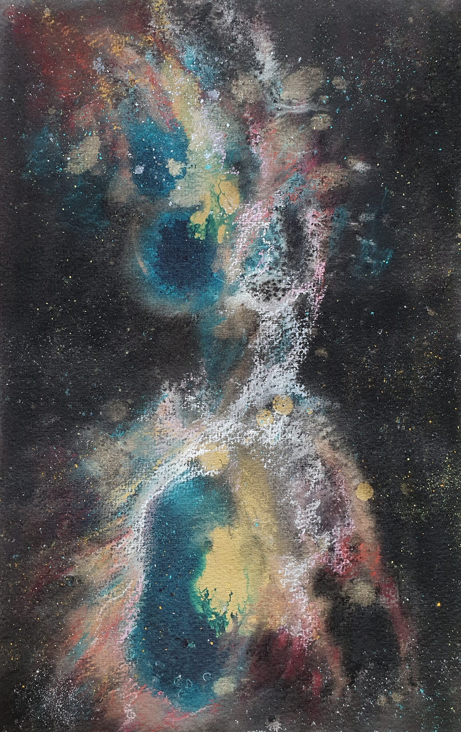 Étoiles, planètes et magie de l’univers… Sur une base d’encres lumineuses, de noir de Chine mystérieux et de projections d’acrylique scintillantes, laissez-vous emporter par la danse des couleurs et peignez au pastel l’univers où le réel et l’imaginaire se confondent.