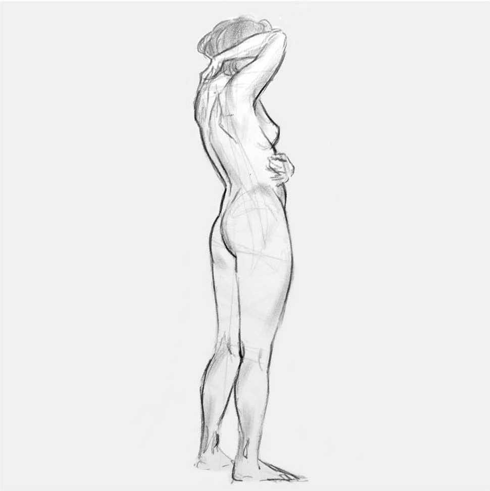 Nous alternerons poses courtes (1–5 min) pour le geste et la proportion, et poses longues (20–40 min) pour les volumes, valeurs et le modelé.